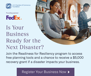 The U.S. Chamber of Commerce Foundation’s R4R program helps small businesses build resilience and better prepare for disasters. Developed in collaboration with FedEx, it’s designed to motivate small businesses to complete a disaster preparedness checklist. Once that’s done, they may register for the program and, if eligible, have a chance to receive a recovery grant should a disaster strike.